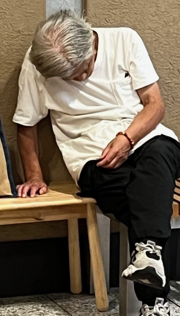 相方の買い物に待ちくたびれたのか、連れ合いがスーパーの出口で寝込んでいた。 西洋では公共の場での居眠りは御法度…